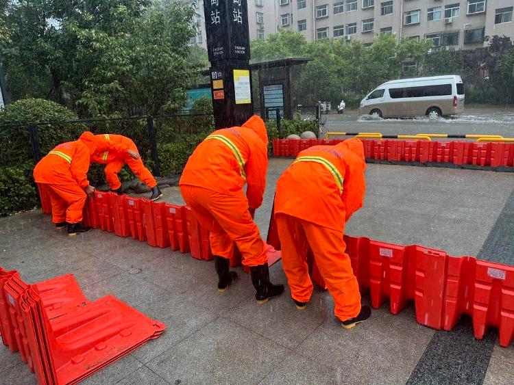 防水就是严守入口。工程设计上,地下空间出入口处一般设置台阶或反坡,以减小入侵水量。在物业运营上,工作人员往往会准备沙包沙袋、防淹门、挡水板等防水设施,堵截暴雨洪水、防止倒灌,减慢洪水流入速度。